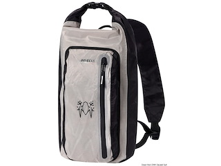 Chiusura quick proof (alto o laterale), sistema ultra fix per agganciare moschettoni o altro, tasca a rete, spallacci removibili. Impermeabilità alta da permettere il galleggiamento. Resistente a forti pressioni d'acqua e a brevi immersioni fino a 1 mt.