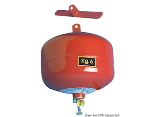 Regolamentare per locali cucina in quanto spegne bene le fiamme di olii vegetali che si usano per cucinare. Bombola in alluminio inossidabile, completo di supporto.