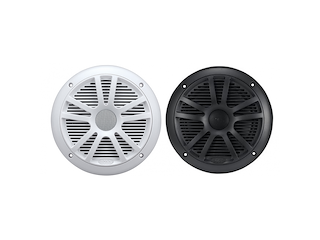 Coppia di altoparlanti MR652C in ABS bianco impermeabili adatta all’installazione su qualsiasi tipo di imbarcazione. Resistono senza nessun problema alla corrosione da parte della salsedine, anche dopo l’installazione il colore rimane invariato, senza subire mutazioni dovute agli agenti atmosferici. Impeccabili in ambito di prestazioni. Casse coassiali a 2 vie, potenza max. 350 W, impedenza 4 Ohm, risposta frequenza 60 Hz - 20 Khz. Dim. Ø est. mm. 176, Ø foro mm. 129, prof. mm 62.
