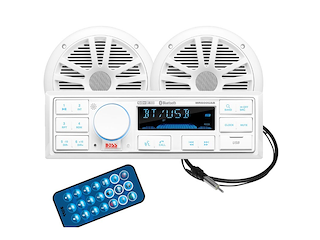 Stereo Boss Audio Marine MGR350B - Casse MR6W da 6.5 180Watts - Antenna FM stilo MRANT12W SPECIFICHE ARTICOLO Codice produttore: MGR350B-MR6W-MRANT12W Codice EAN: GARANZIA RIVENDITORE AUTORIZZATO GARANZIA 2 ANNI DESCRIZIONE STEREO Il nuovissimo stereo da cruscotto Boss Marine MGR350B è uno stereo da barca circolare e compatto che ricalca le linee estetiche degli strumenti presenti in plancia di comando e permette quindi di occupare il minimo spazio