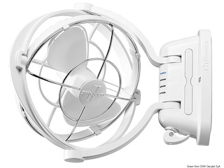 Può direzionare il flusso in ogni direzione 360°. Rimane molto piatto contro la parete quando non in uso.Funziona a 12/24V ed ha un timer integrato di auto spegnimento a 3,6,9 e 12 ore.
