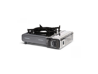 Fornello in acciaio, leggero e compatto, accensione piezoelettrica con sistema di chiusura di sicurezza della cartuccia per un utilizzo sicuro. Facile da pulire grazie al vano cattura grasso. Con valigetta per il trasporto inclusa.