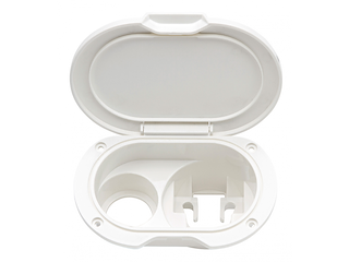 Contenitore in ASA bianco resistente ai raggi UV per doccette e rubinetti miscelatori.