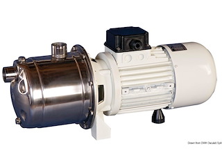 Corpo pompa e albero in acciaio inox, girante e diffusore in norlin, corpo motore e supporto in ghisa verniciata. Autoadescanti dopo il primo riempimento, richiedono una valvola di non ritorno.Elevata capacità di aspirazione. Comunemente utilizzate per la distribuzione di acqua in pressione nei servizi di bordo (docce, cucine, lavandini, wc, ecc..) per gruppi di condizionamento, antincendio, lavaggio ponti e catene.Indicate per l'utilizzo con acqua dol