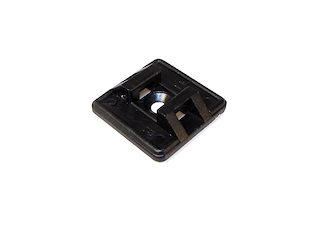 Supporto in nylon autoadesivo, con foro per vite di fissaggio supplementare per fascette stringitubi. Dim. 27x27 mm. Confezione 100 pz.