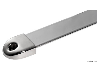 Permette di fare gli occhielli terminali ai nastri evitando le cuciture. Acciaio inox AISI 304 lucidato a specchio.