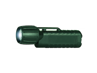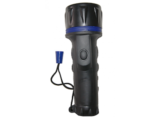 Torcia impermeabile a 1 led 0,3W (45 lumen), con corpo antiurto in gomma nera dotata di cinturino da polso. Alimentazione: 2 batterie da 1,5 V tipo LR20 non incluse. Dimensioni cm.25x14x9. Peso gr.200