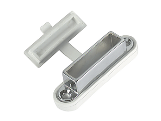 Chiusura portalucchetto modello compact. Costruita in ottone cromato. Dimesioni 66 x 50 mm.