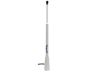 Antenna barca Glomex RA1281. E' un’antenna autoportante AM-FM molto solida, costruita in gomma sintetica anti-ingiallimento e antirottura, alta appena 300 mm (12’’). Quella in AM/FM è una modalità di trasmissione diffusa nel VHF. Le bande AM/FM infatti
