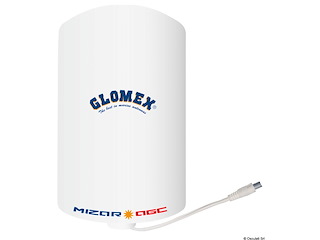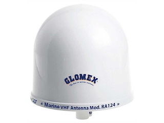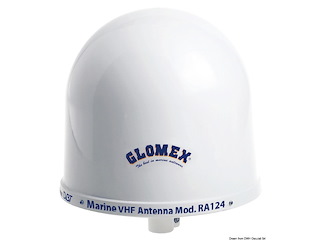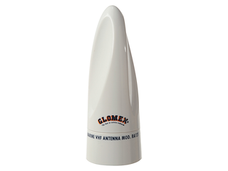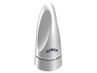 Antenna GLOMEX VHF RA121. Antenna VHF a basso profilo, con look uguale all'antenna TV " Avior ". Completa di cavo RG58CU da 9 m + connettore PL259 + basetta montaggio. Guadagno 1dB, massima potenza di entrata 50 W. Polarizzazione verticale.