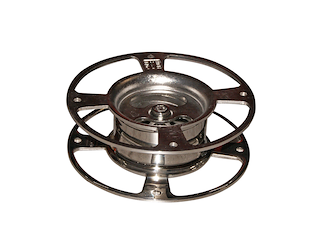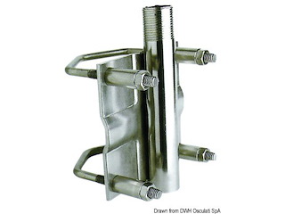 In acciaio inox elettrolucidato, per tubi 22/80 mm. Filetto universale antenne 1" x 1/4