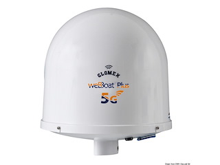 weBBoat® Plus 5G è il nuovo sistema integrato WORLDWIDE COASTAL INTERNET 5G/4G/Wi-Fi DUAL SIM All-in-One Plug & Playb, ideato da Glomex per avere hotspot Wi-Fi sicuro all’interno dell’imbarcazione, grazie alle antenne 5G/4G e antenne Wi-Fi integrate per la connessione stabile e ultraveloce, certificata fino a oltre 20 miglia dalla costa.Download speed in 5G fino a 2.5 Gbps grazie al modulo CAT 23. Il 5G offre una connessione con lo stesso livello di cavo fibra, ma totalment