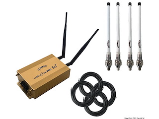 weBBoat® Link PRO 5G EXT è il nuovo kit Coastal Internet Dual SIM 5G/4G/Wi-Fi, funzionante in tutto il mondo, con unità da posizionare all'interno dell'imbarcazione + 4 antenne 5G da esterno ad alto guadagno e 4 cavi coassiali LMR200 da 7 m per navigare su Internet e avere un hotspot Wi-Fi sicuro all'interno e all'esterno dell'imbarcazione, fino a 20 miglia dalla costa.È possibile utilizzare contemporaneamente fino a 32 dispositivi diversi senza alcun degrado del segnale o delle prestazioni