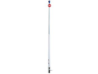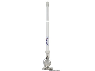 In caso di rimessaggio o stivaggio dalla imbarcazione, si elimina completamente l'ingombro dell'antenna. Lunghezza 90 cm, guadagno 3db, completa di base snodata in nylon 29.135.00, cavo 4,50 m, connettore finale PL259, passacavo 29.140.00, protezione 29.138.00.