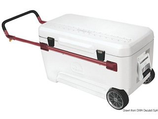 Modello: Ultra 110. Capacità 105 Lt. Dimensioni: 101 x 47 x 50 H. . Peso: 12,7 Kg. . Con tappo di scarico. Completa di cerniere + ganci chiusura inox, maniglia sollevamento confort, maniglione di traino telescopico inossidabile.