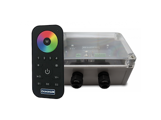 L'OceanDMX RC consente di controllare a distanza il sistema di illuminazione a LED a colori RGBW. Il ricevitore si collega al telecomando tramite radiofrequenza (MHz 868). Il ricevitore è impermeabile e ha una portata fino a 20 m, a seconda della posizione di montaggio.