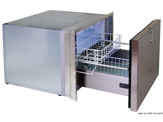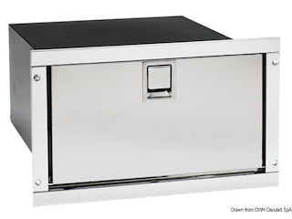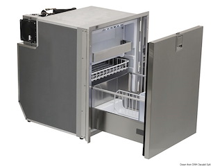 Serie frigo/congelatore a cassetto con apertura frontale e battuta in acciaio inox. Completi di compressore Secop a voltaggio universale 12/24 V.