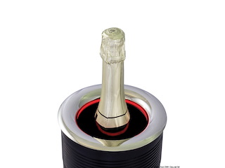 Apparecchio di raffreddamento da incasso per bottiglie. Mantiene il vino o lo champagne perfettamente refrigerati. Si attiva toccando qualsiasi parte della corona di acciaio. Illuminazione led interattiva con 27 opzioni di colore. IP65 lato esterno – IP22 lato interno.