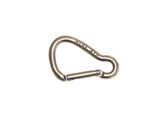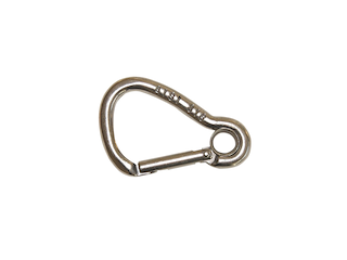 Moschettone in acciaio inox AISI 316. Modello a pera. Chiusura Key-Lock. Dimensioni: Ø 5mm. Lunghezza 50mm. Carico di rottura 120Kg.