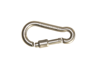 Moschettone in acciaio inox AISI 316. Modello di alta qualità, ampia apertura ed alto carico di rottura. Chiusura Key-Lock. Dimensioni: Ø8mm. Lunghezza 80mm. Carico di rottura 1500Kg.