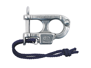 Moschettone in acciaio inox a sgancio rapido per sci nautico. In caso di emergenza il connettore immediatamente anche sotto carico, tirando il cordoncino. Carico massimo Kg. 1000. Omologato RINA. Length mm 59