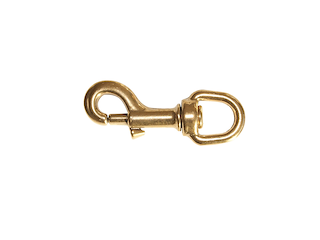Moschettone in ottone lucido, Modello occhio girevole. Lunghezza 90mm.