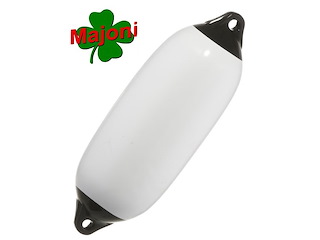 Parabordi cilindrici Majoni, totalmente bianchi. Pareti di forte spessore, due fori di aggancio rinforzati. Dimensioni: 620 x 210 mm. .
