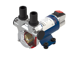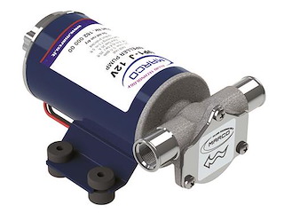 Pompa autoadescante, con ingranaggi in PEEK. Idonea per spruzzatura, trasferimento di acqua (max a 40°), gasolio (punto di infiammabilità 38°), antigelo.