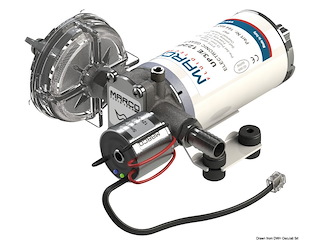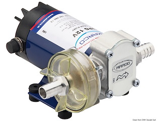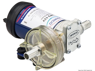 Specifiche tecniche : Portata 28 Lt/min . Alimentazione 12 volt . Adescamento fino a 1,5 mt. Pressione 1 Bar / 14,5 PSI . Consumo 8 A ( fusibile consigliato 10 A ) Bocche da 3/8" ( Ø est. 20 mm. )