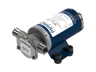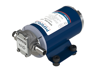 Pompa UP1-J autoadescante dotata di portaspazzole interno con filtro antidisturbo EMI, girante in gomma, corpo in ottone nichelato con albero in acciaio inossidabile, calotta impermeabile e passacavo stagno. Ideale per svuotamento sentine e acque grigie su ogni tipo di imbarcazione. ISO 8849 e ISO 8846.