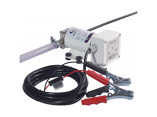Kit compatto per il cambio olio. Facile da utilizzare e trasportare. Consente con una semplice inversione dei cavi, lo svuotamento e il riempimento dell'olio. Completo di pompa con ingranaggi in bronzo, pinze, fusibile di protezione, accessori e tubi per