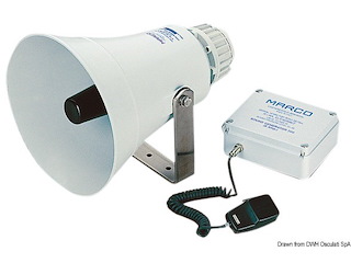 Funzioni: - Tromba - Entrata VHF - Segnale automatico da nebbia - Microfono.Completa di altoparlante stagno, staffa in acciaio inox, microfono di comando. Regolamentare per imbarcazioni fino a 12 m.