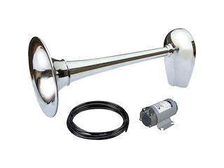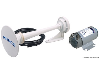Tromba omologata R.I.Na. ELE/118208CS/002 e LLOYD’S REGISTER MCA Bureau Veritas in accordo alle norme internazionali COLREG 72, IMO classe IV, approvato NMMA ABYC A-23. Per imbarcazioni da lavoro e da diporto di lunghezza da 12 a 20 mt., 123 dB di livello sonoro, 315 Hz. Udibilità minima in mare di 0,5 miglia marine. Completa di compressore elettrico e accessori per il montaggio.