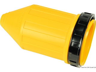 Presa rivestita in nylon con rigatura per presa art.3939620/1. Contatti e terminali resistenti alla corrosione. Per il collegamento della corrente dalla banchina alla barca.