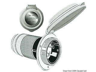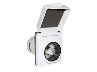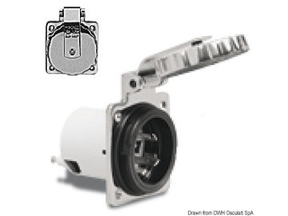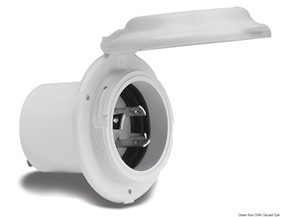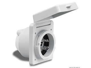 Spina ad incasso in poliestere rinforzato per presa art.3939624.Sistema easy lock,stagna con protezione posteriore con sfiato. Per il collegamento della corrente dalla banchina alla barca.