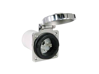 Presa Marinco ad incasso in acciaio inox 316 con sistema Easy Lock. Tappo soft Touch, rimane aperto durante il collegamento. Perfettamente stagna e dotata di blocco di chiusura. Protezione posteriore con sfiato. Modello da 50A. Grado di protezione IP56.