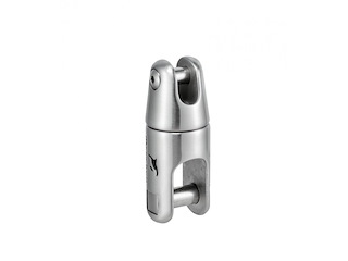 Giunti in acciaio inox AISI 316 per congiungere l’ancora alla catena. La loro forma ogivale consente un perfetto scorrimento della catena e dell’ancora sul musone di prua. Modello girevole con doppio snodo. Carico di lavoro kg .1350, per catena Ø mm. 10-12.