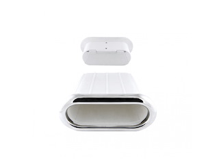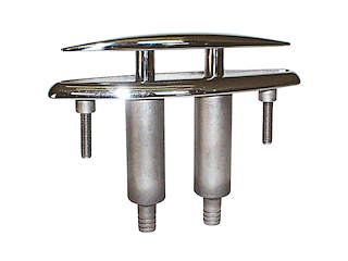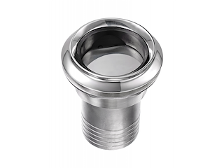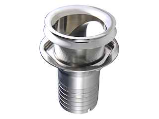 Bocchettone scarico motore in acciaio inox AISI 316, con paletta per evitare il riflusso dell’acqua verso il motore. Bordo esterno con scanalatura per evitare all’acqua di scarico del motore di sporcare la poppa della barca. Completo di controflangia per il fissaggio.