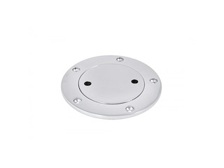 Tappo imbarco in fusione di acciaio inox AISI 316 lucidato a specchio completamente a filo, con cavetto inox di sicurezza e molla di richiamo. Per aprire premere e ruotare la parte superiore che fuoriesce automaticamente permettendo di svitare il tappo stesso.