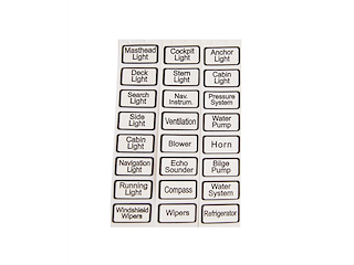 Serie di simboli adesivi colore bianco per interruttori in rilievo 24 utenze,dim. mm. 22 x 11