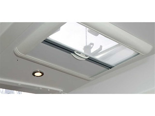 Sistema elegante e di facile applicazione per boccaporti rettangolari e rotondi, installato sulla superficie del rivestimento interno della cabina o adatto anche per essere nascosto nel rivestimento interno.Tenda in tessuto plissettato oscurante al 100% + zanzariera plissettata, inserite in un'unica cassetta in alluminio dalla linea ultrasottile. - Optional da ordinare separatamente controtelaio di finitura composto da 4 modanature separate. Su richiesta, disponi