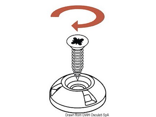 Per fissaggio tendalini, coperture, cuscini, cuscineria etc.Fabbricati in composito plastico, presentano il vantaggio di avere la parte da fissare in coperta senza sporgenze dannose per i piedi e che si possono impigliare nelle cime di bordo.Totalmente anticorrosione ed UV resistenti.