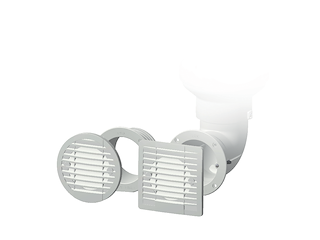 Raccordo drittofissaggio con 4 viti. Può essere abbinato a prese d’aria rotonde o quadrate.