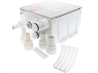 Completo di vaschetta/filtro raccolta acque grigie. Pompa ad azionamento automatico a vaschetta piena.