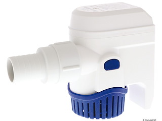 Codice Rule 98B-24, 24 V, consumo 1,8 A, portata l/min 55, 3 entrate, raccordi entrata inclusi 2 x 19 mm; 1 x 25 mm; 1 x 29 mm, scarico 19 mm. Dimensioni 240 x 230 x 130 h mm.