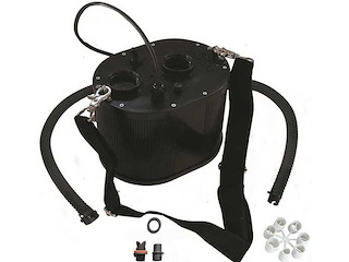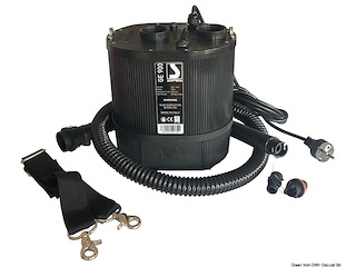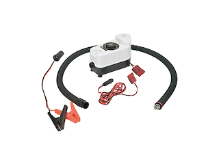 Gonfiatore e sgonfiatore elettrico (flusso d’aria: 3400 l/min, pressione massima raggiungibile: 360 mbar). Ideale per gonfiare grandi strutture. Il grado di protezione è sempre IP66. Leggero e compatto, viene fornito con una comoda tracolla per il trasporto. Tubo da 40 mm e raccordi per le più comuni valvole inclusi.