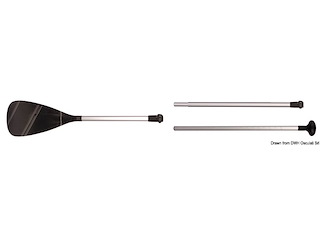Pagaia telescopica per Sup in vetroresina con regolazione rapida da cm.170 a 215, smontabile in 3 sezioni (ingombro massimo cm.86). Pala in nylon caricata vetro cm. 23x43, inaffondabile. Tubo Ø mm. 29x1,8. Peso 950 gr.
