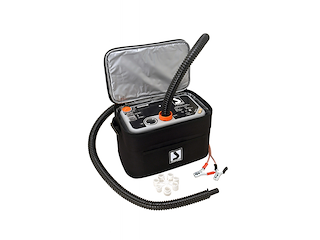 È adatto a molte applicazioni ma è ideale per il SUP, potendo raggiungere 1,2 bar (18 psi) di pressione massima. E’ dotato di uno speciale manometro per la selezione della pressione desiderata. Quando viene raggiunto, si ferma automaticamente. È inoltre dotato di un set di raccordi per le più comuni valvole di gonfiaggio. Viene fornito con una borsa con tracolla, comoda e resistente.Tempo medio di gonfiaggio: 9’30’’ (Tavola SUP da 265 litri a 1200 mbar).