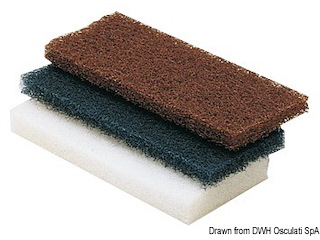 Cuscinetto abrasivo per la pulizia di ponti e superfici in vetroresina. Non indicato per superfici verniciate o lucidate. Dimensioni mm 250X115. Confezione 2 pezzi