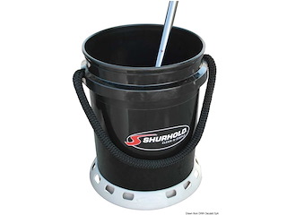 Il sistema è composto da:A) Secchio in plastica UV resistente, con comoda maniglia in treccia di nylon Ø 19 mm.B) Speciale base ad incastro antiderapante, UV resistente, galleggiante. Preserva inoltre la coperta dai graffi.C) Portaoggetti con coperchio, può anche servire come sedile.D) Vano per riporre prodotti per la pulizia.E) Griglia di fondo per favorire l'asciugatura e la conservazione di pelli assorbenti naturali e artificiali, spugne, ecc...